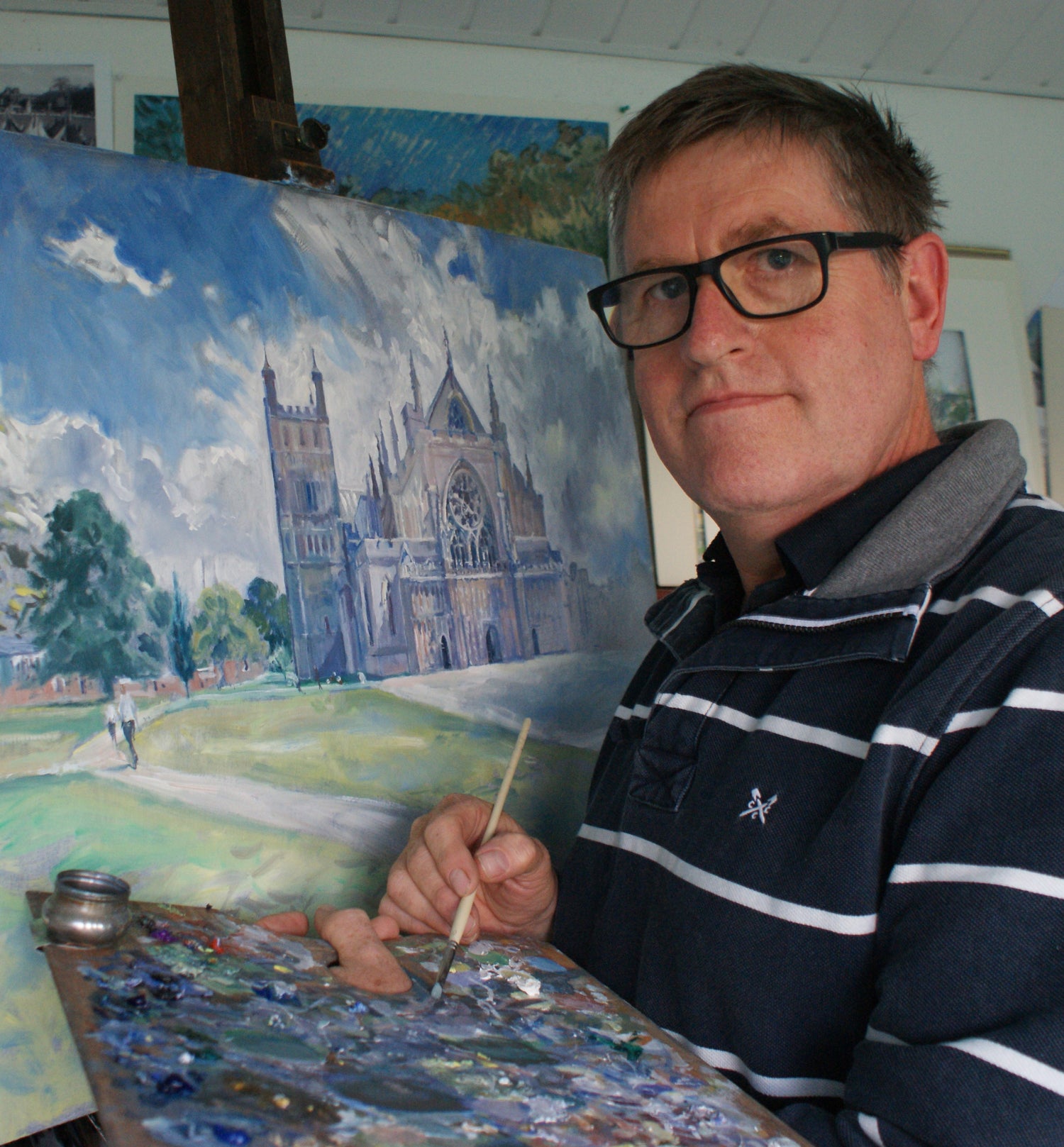 Residing in Devon, Andrew is inspired by the beauty of local landscapes and coastal scenes where he paints en plein air as it provides an immediacy to his art. He is also a keen architecture artist and frequently depicts Exeter Cathedral. Painting is a way of life and Andrew can often be seen painting while on family holidays in this country and abroad.